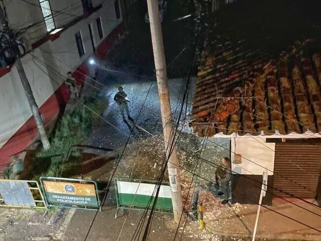 El suceso violento sacudió a esta población del norte del Cauca cuando un artefacto explosivo, al parecer, lanzado desde un dron, cayó contra la estación ubicada en el centro del municipio.