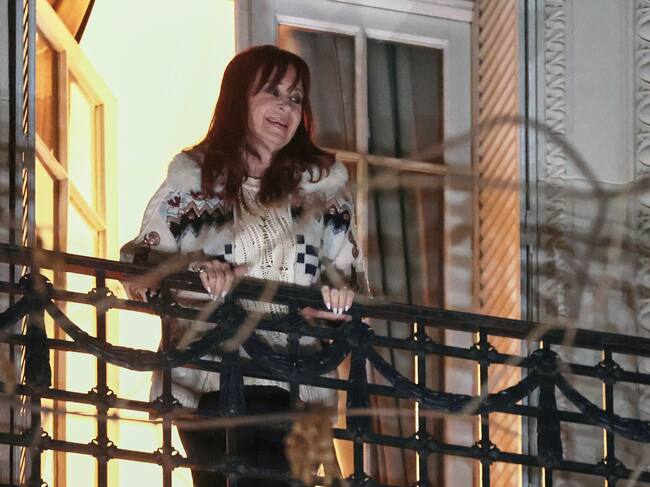 La expresidenta de Argentina, Cristina Fernández, saluda a militantes kirchneristas desde el balcón de su residencia en Buenos Aires. FOTO: EFE/ Stringer / STRINGER (EFE)