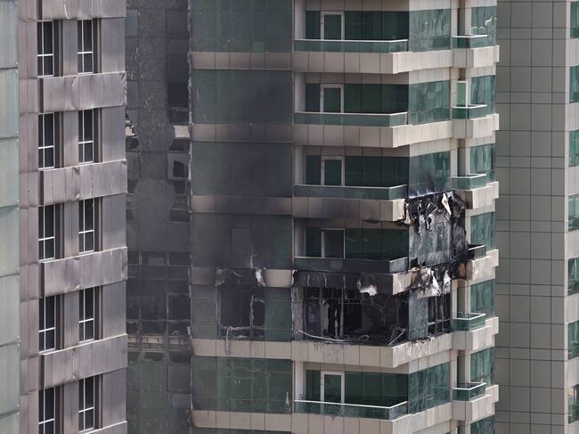 Daños del rascacielos incendiado en el piso 67 en Dubái. FOTO: FADEL SENNA/AFP via Getty Images / FADEL SENNA