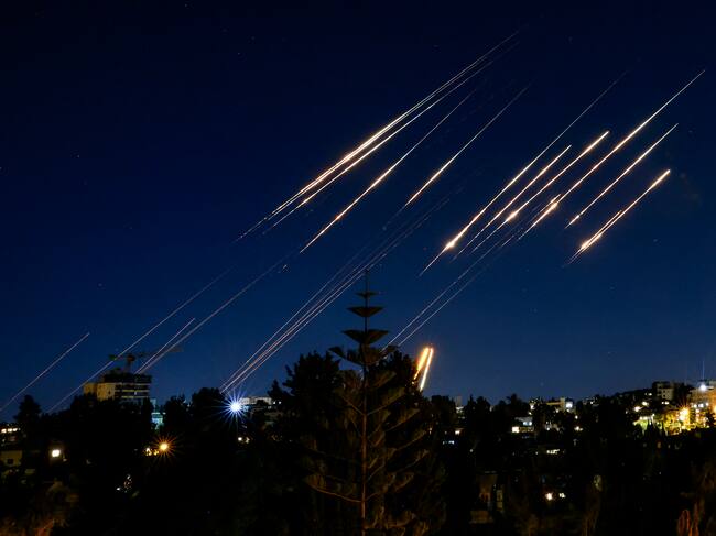 Misiles vistos desde el cielo en Jerusalén. FOTO: MENAHEM KAHANA/AFP via Getty Images / MENAHEM KAHANA