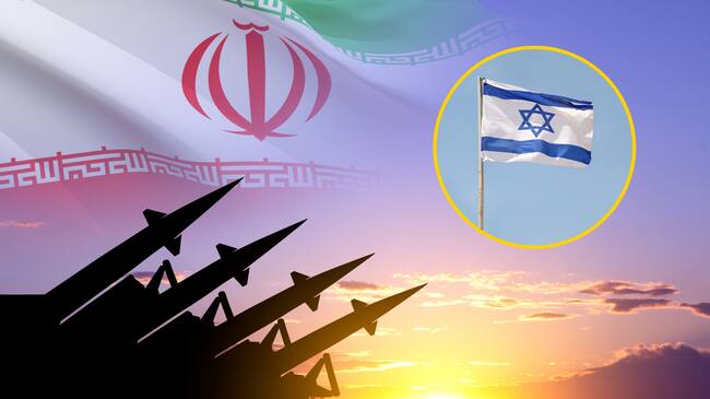 Referencia de misiles iraníes y bandera de Israel. Foto: Anton Petrus y Nick Brundle Photography vía Getty Images.