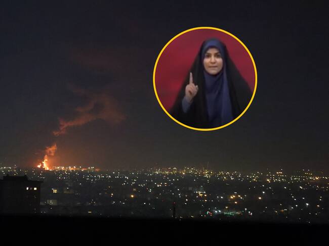 Bombardeo en Teherán. Foto: EFE. — Reportera de Irán. Foto: Jaap Arriens/NurPhoto via Getty Images.