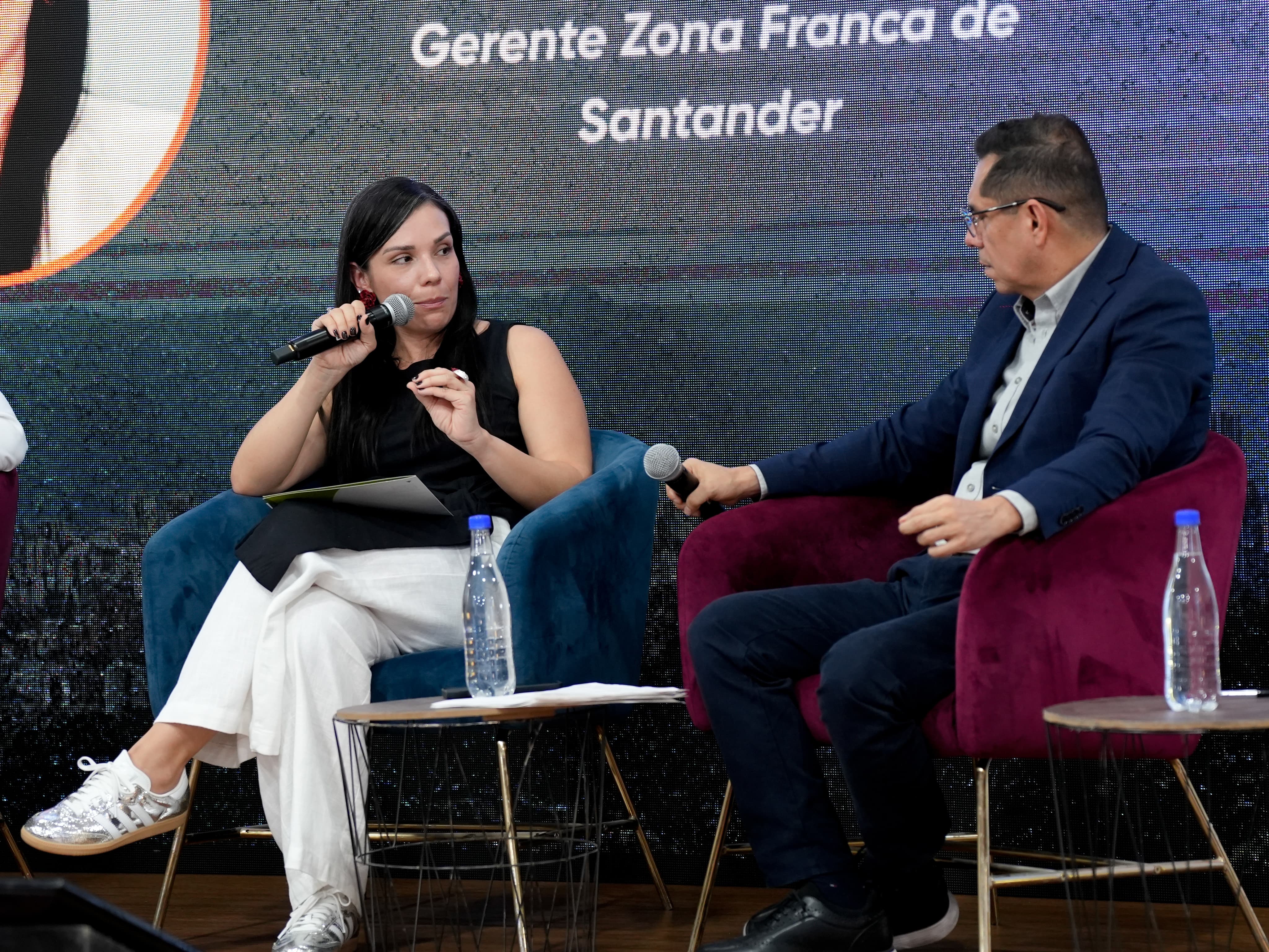 Andrea Serrano, gerente General Zona Franca Santander en conversación con Juan Carlos Ordóñez. | Foto: W Radio