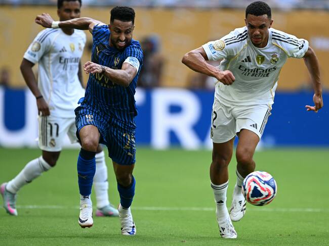 Salem Al-Dawsari del Al Hilal y Trent Alexander-Arnold del Real Madrid. FOTO: CHANDAN KHANNA/AFP via Getty Images