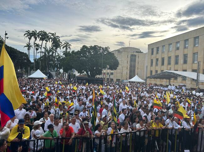 Más de 2 mil personas, según el reporte de las autoridades, se dieron cita en la plaza cívica Luis Carlos Galán Sarmiento de Bucaramanga para concentrarse por la unidad y el respeto, la salud del senador Miguel Uribe y para que cese la violencia política en el país tras una convocatoria realizada por la Gobernación de Santander.