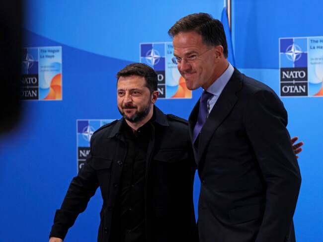 Secretario general de la OTAN, Mark Rutte, junto al presidente ucraniano, Volodímir Zelenski. FOTO: Omar Havana/Getty Images / Omar Havana