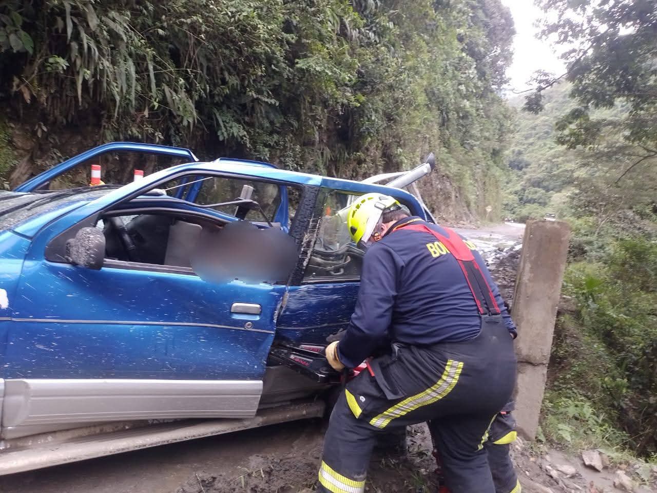 La víctima quedó atrapado en el vehículo, Bomberos debió recuperarlos