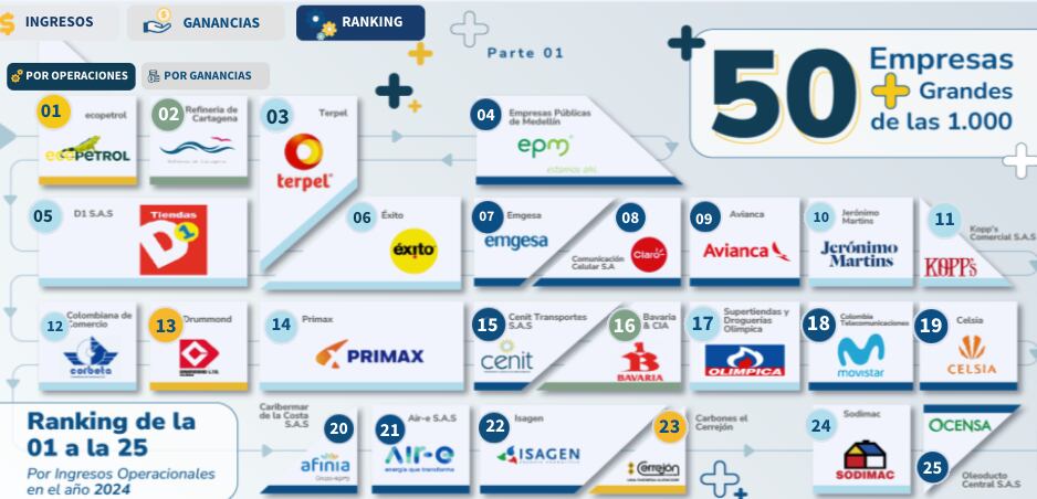 La Superintendencia de Sociedades reveló el ranking de las 1.000 empresas más grandes de Colombia.
