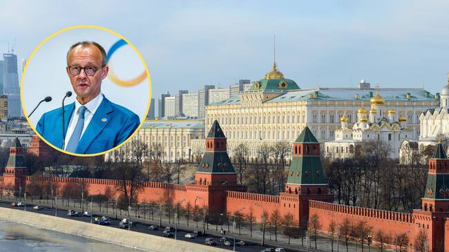 Merz. Foto: Michael Kappeler/picture alliance via Getty Images - Kremlin. Foto: Getty Images.