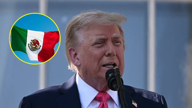 Donald Trump y bandera de México. Foto: BRENDAN SMIALOWSKI/AFP/ Holgue Leue vía Getty Images.