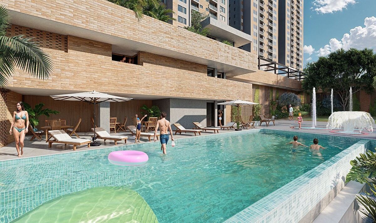 El proyecto cuenta con zonas sociales diseñadas para el bienestar de toda la familia: gimnasio, piscina, zonas húmedas, sala de coworking, terraza BBQ, salón de juegos, parque infantil, salón infantil, salón social y espacio para mascotas. Todo esto se complementa con parqueadero privado, acabados de alta calidad y diseño funcional.