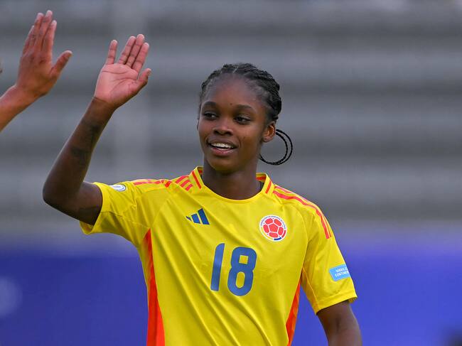 Linda Caicedo celebra el quinto gol de Colombia ante Bolivia en el Estadio Gonzalo Pozo Ripalda en Quito el 22 de julio de 2025. FOTO: Rodrigo Buendia - Getty Images / RODRIGO BUENDIA