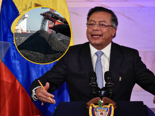 Gustavo Petro e imagen de referencia de un barco con carbón. Fotos: (Colprensa - Cristian Bayona) / Getty Images