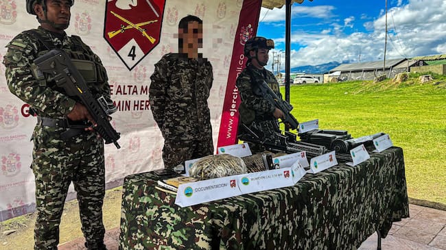El teniente coronel, Edinson Fernando Jimenez, comandante del Batallón de alta Montaña, Número 4, “en el momento de la captura a alias ‘El Mono’, se le incautaron, dos fusiles, un mortero de calibre 60 mm, una pistola, más de mil cartuchos, chalecos multipropósito, pancartas alusivas a las disidencias, entre otros”.