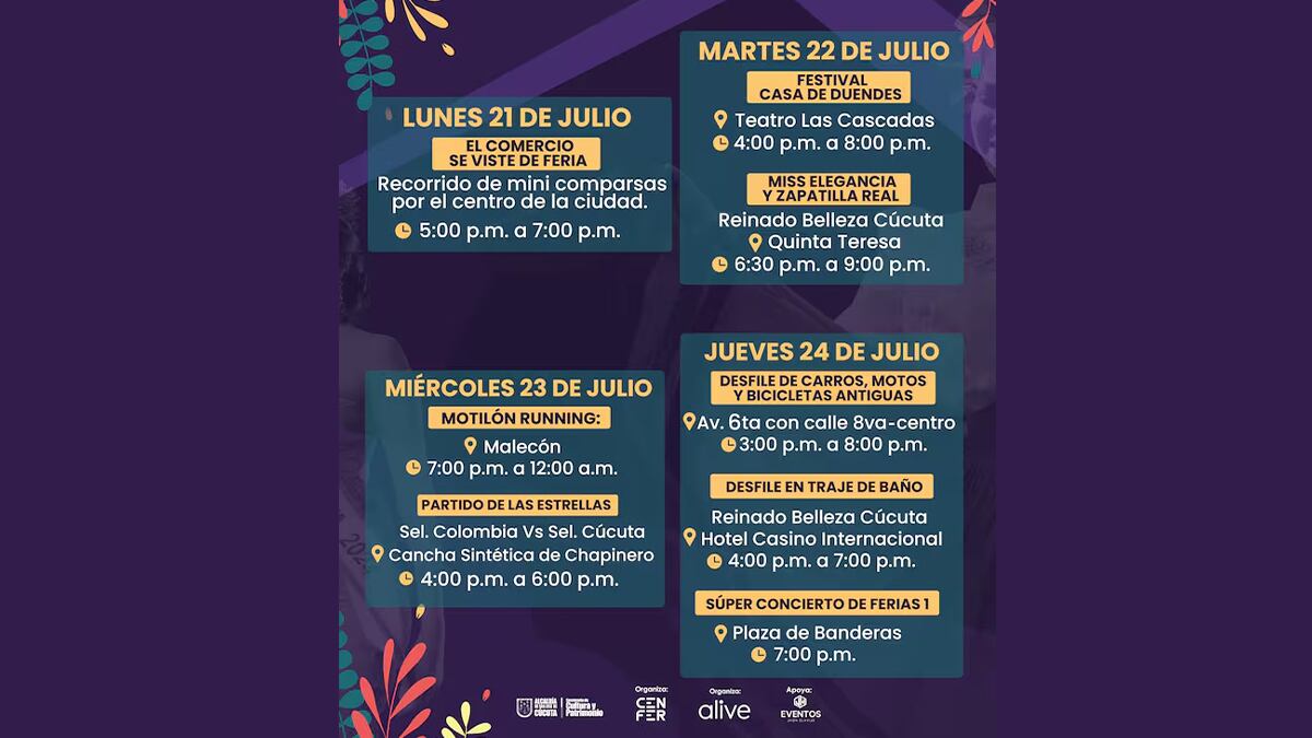 Del 21 al 27 de julio, Cúcuta se viste de ferias. La ciudad fronteriza o también conocida como Ciudad Verde de Colombia, preparó toda una programación para acoger a propios y visitantes, con una agenda cultural, propia de esta región.