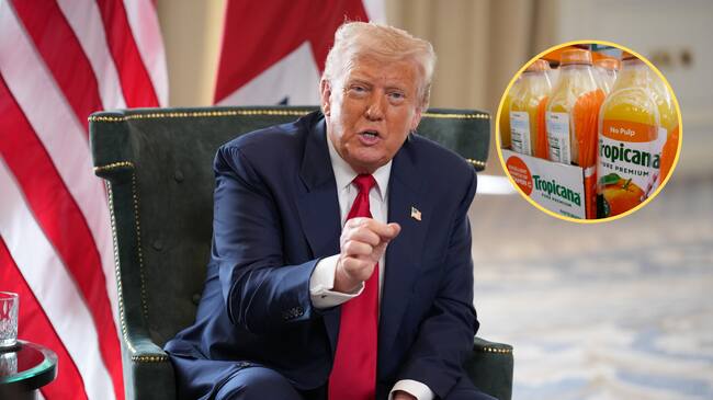 Donald Trump. Foto: Andrew Harnik/Getty Images - Jugo de naranja. Foto: Kevin Carter/Getty Images.
