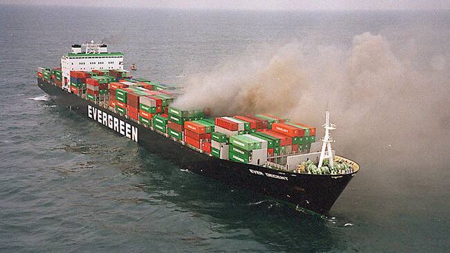 El buque de bandera taiwanesa Ever Lunar, que se encuentra fondeado en la bahía, transportaba 7.000 contenedores y llegaba de Panamá.