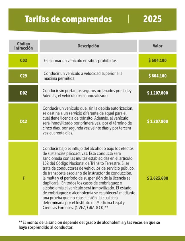 Vea la tabla en donde la Secretaría de Movilidad lo explica:
