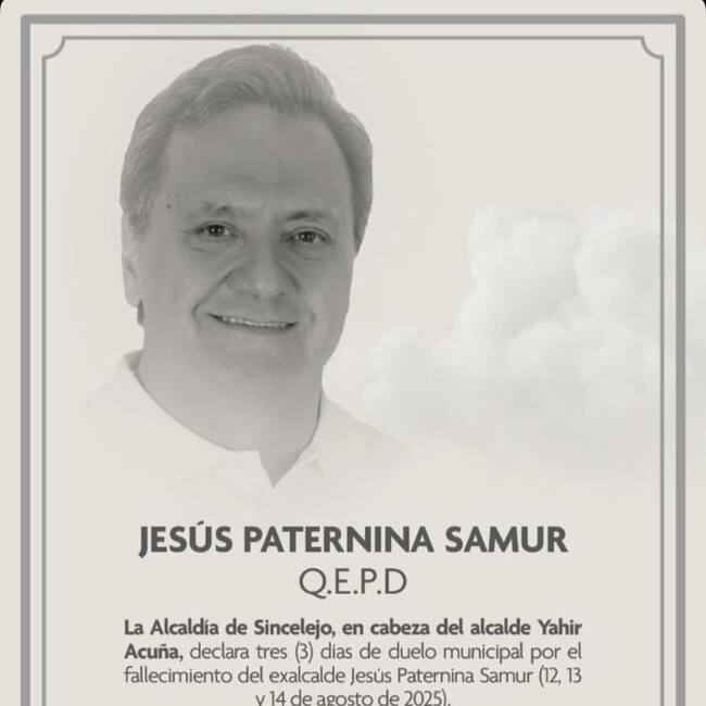“La Administración Municipal, en cabeza del alcalde Yahir Acuña, lamenta profundamente el fallecimiento del diputado departamental y exalcalde de Sincelejo, Jesús Paternina Samur. Enviamos un mensaje de solidaridad y acompañamiento a su familia, amigos y seres queridos, elevando nuestras oraciones para que encuentren fortaleza y consuelo en este difícil momento”, indicó la Alcaldía de Sincelejo.