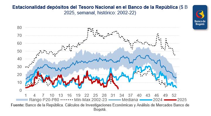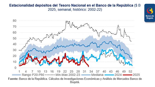 La caja de la Nación alcanzó el mínimo histórico de $1.8 billones el 8 de agosto: Banco de Bogotá