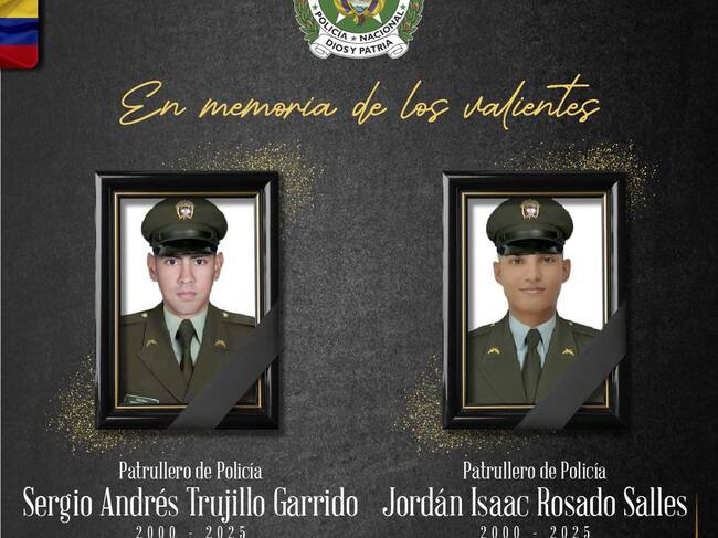 Las víctimas fueron identificadas como los patrulleros Sergio Andrés Trujillo Garrido y Jordán Isaac Rosado Salles. Crédito: Policía Nacional.