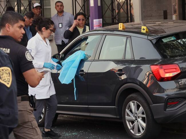 Investigadores forenses trabajan en la escena del crimen del asesinato de José Muñoz y Ximena Guzmán en Ciudad de México el 20 de mayo de 2025. (Foto de VALENTINA ALPIDE/AFP via Getty Images) / VALENTINA ALPIDE