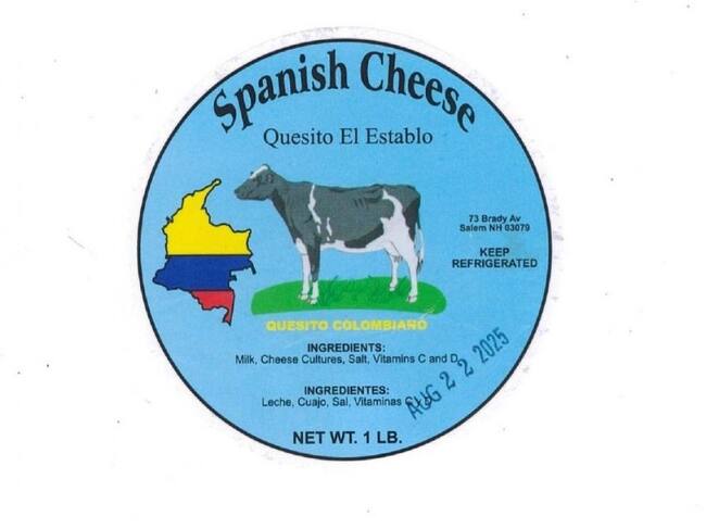 - “El producto retirado del mercado está envuelto en plástico y colocado dentro de bolsas tipo Ziploc. Cada unidad pesa aproximadamente 1 libra y lleva una etiqueta azul con la imagen de una vaca en el centro y la leyenda “Quesito Colombiano” escrita en color amarillo debajo. En la parte superior de la etiqueta se indica “Spanish Cheese” y aparece “Quesito El Establo” como fabricante. Las fechas de vencimiento están impresas en la etiqueta”.