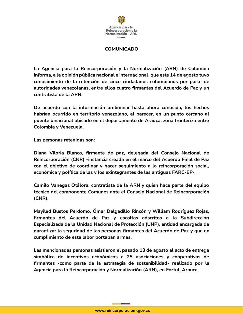 Según autoridades del estado de Apure, en Venezuela, cinco colombianos fueron detenidos el pasado domingo 10 de agosto cuando ingresaron a territorio venezolano con armas de fuego en el marco de un operativo de la Fuerza Armada Nacional Bolivariana (FANB).