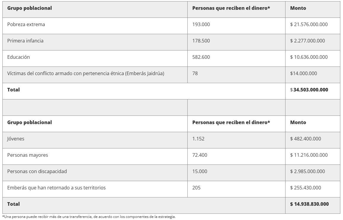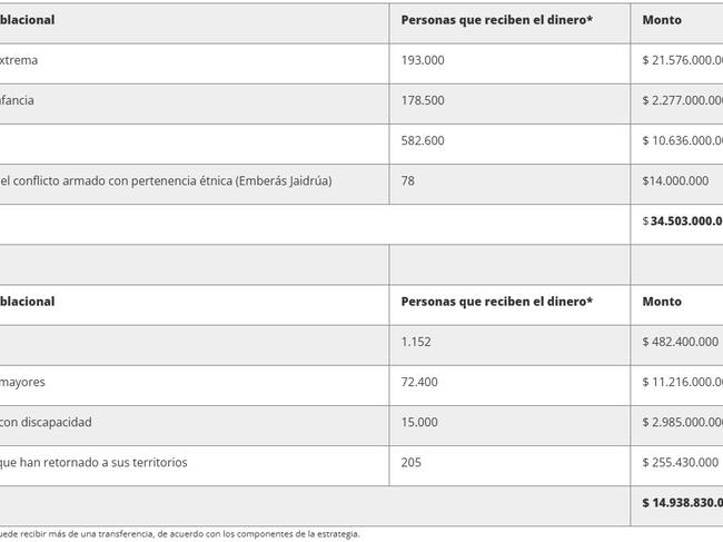 Según la Alcaldía de Bogotá, el nuevo IMG distribuye pagos de transferencias monetarias a diferentes grupos poblacionales de la siguiente manera: