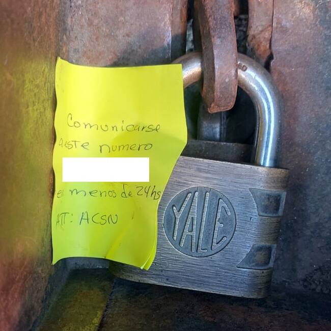 El cartel dice “comunicarse a este número en menos de 24 horas att: ACSN”. La nota apareció en los candados de las puertas de acceso a los establecimientos comerciales en su mayoría de ventas de zapatos y ropa deportiva, los empleados que llegaron como de costumbre a sus lugares de trabajo fueron quienes los encontraron y de inmediato dieron aviso a las autoridades.