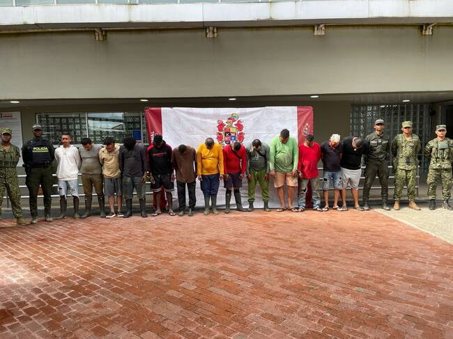 La Armada de Colombia logró la captura en flagrancia de 13 sujetos sindicados de los delitos de explotación ilícita de yacimiento minero y otros materiales.