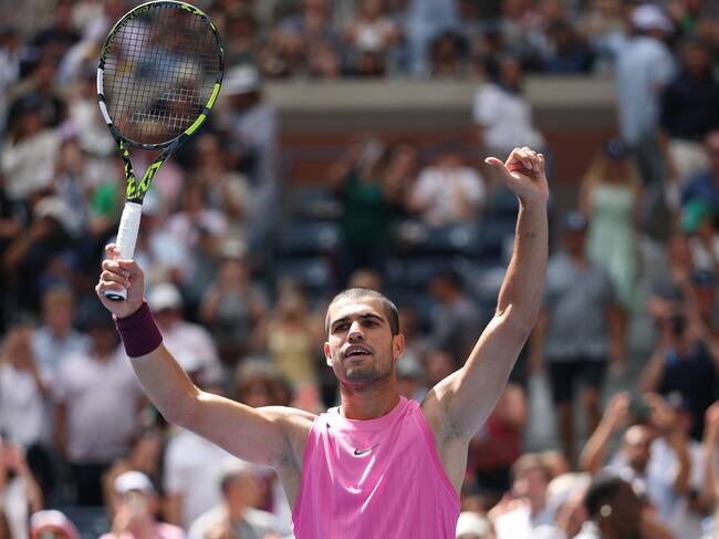 Carlos Alcaraz celebra su victoria ante Luciano Darderi en la tercera ronda del US Open 2025. FOTO: TIMOTHY A. CLARY/AFP vía Getty Images / TIMOTHY A. CLARY
