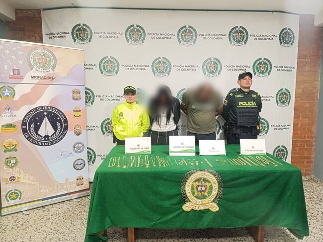 Según la información, en total fueron incautadas cadenas, anillos, pulseras y aretes, avaluados en aproximadamente 400 millones de pesos.