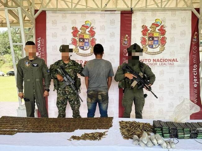 En los hechos un menor reclutado fue recuperado y se incautaron más de 2 mil cartuchos de diferentes calibres con los que el grupo armado, al parecer, iba a atacar a las tropas del Ejército.