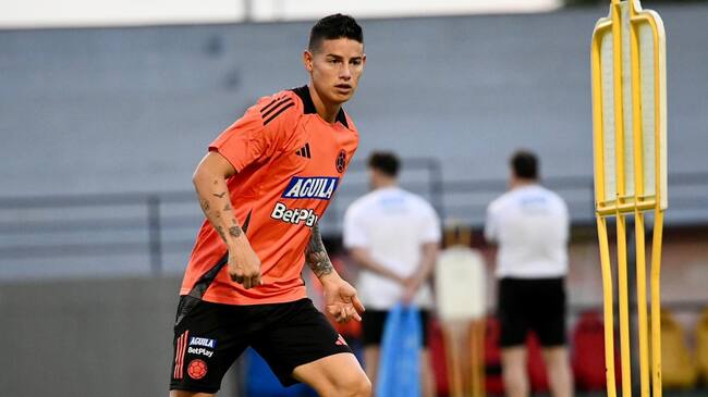 James Rodríguez en un entrenamiento con la Selección Colombia el lunes 1 de septiembre en Barranquilla. FOTO: FCFSeleccioncol/X