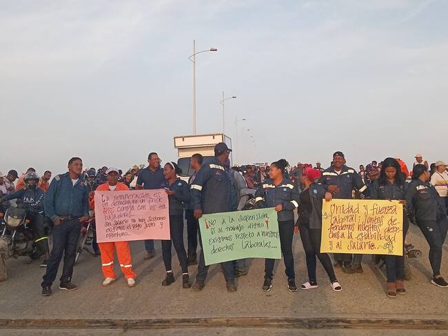Trabajadores bloqueando vía Barú. Foto: suministrada.