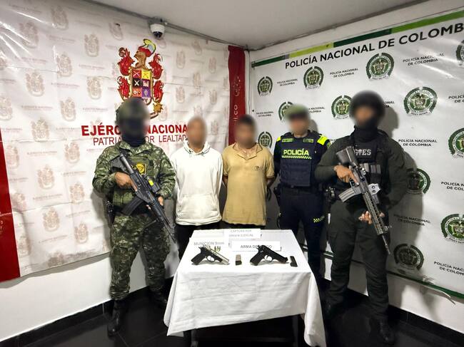 En medio de esta acción de la fuerza pública fueron incautadas un arma de fuego calibre 9 milímetros, un arma traumática, 17 cartuchos de 9 milímetros y 8 cartuchos traumáticos. Tanto el material como los capturados fueron puestos a disposición de la Fiscalía.