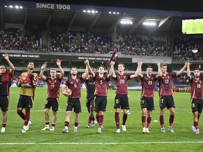Jugadores de Bélgica celebran su victoria ante Kazajistán. FOTO: Jan De Meuleneir / Photo News via Getty Images / Photonews
