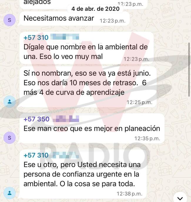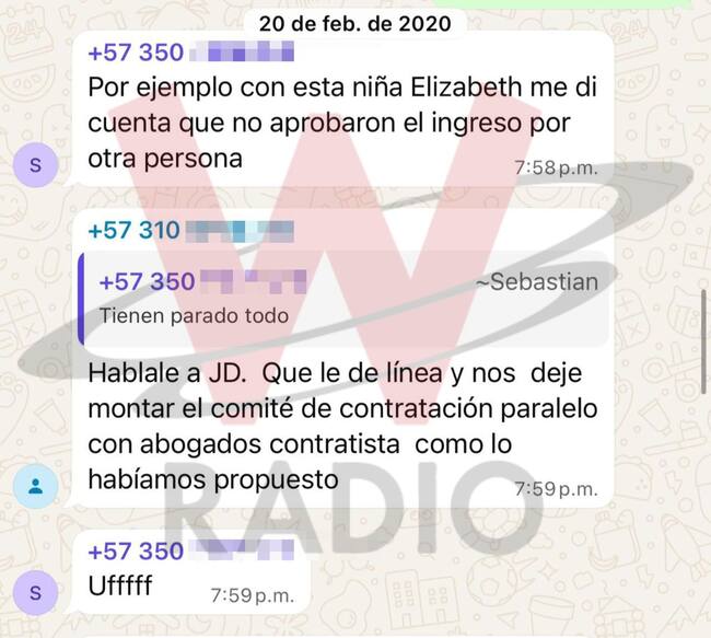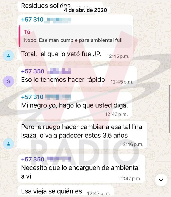Estos chats que W Radio tiene en su poder fueron entregados recientemente a la Fiscalía General de la Nación por un exfuncionario de la Alcaldía.