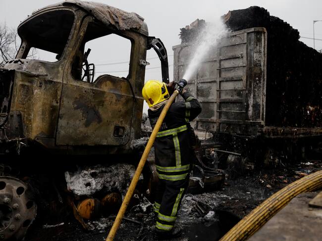 Los bomberos atienden a los vehículos en llamas después de una explosión de gasoductos en la ciudad de La Concordia en el distrito de Iztapalapa de la Ciudad de México, México, el 10 de septiembre de 2025. (Foto de Gerardo Vieyra/Nurphoto a través de Getty Images) / NurPhoto