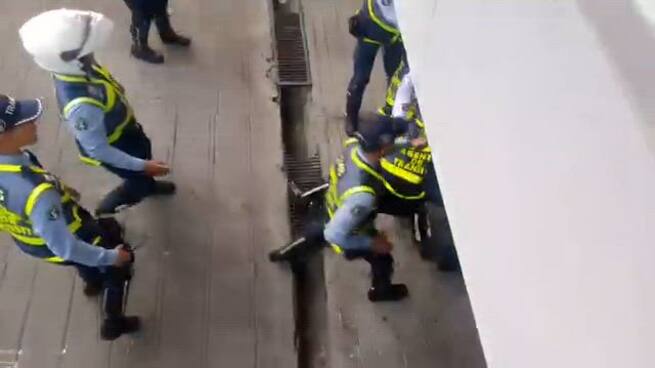 En un video se observa a algunos funcionarios sujetando al hombre, mientras otros le propinan una golpiza.