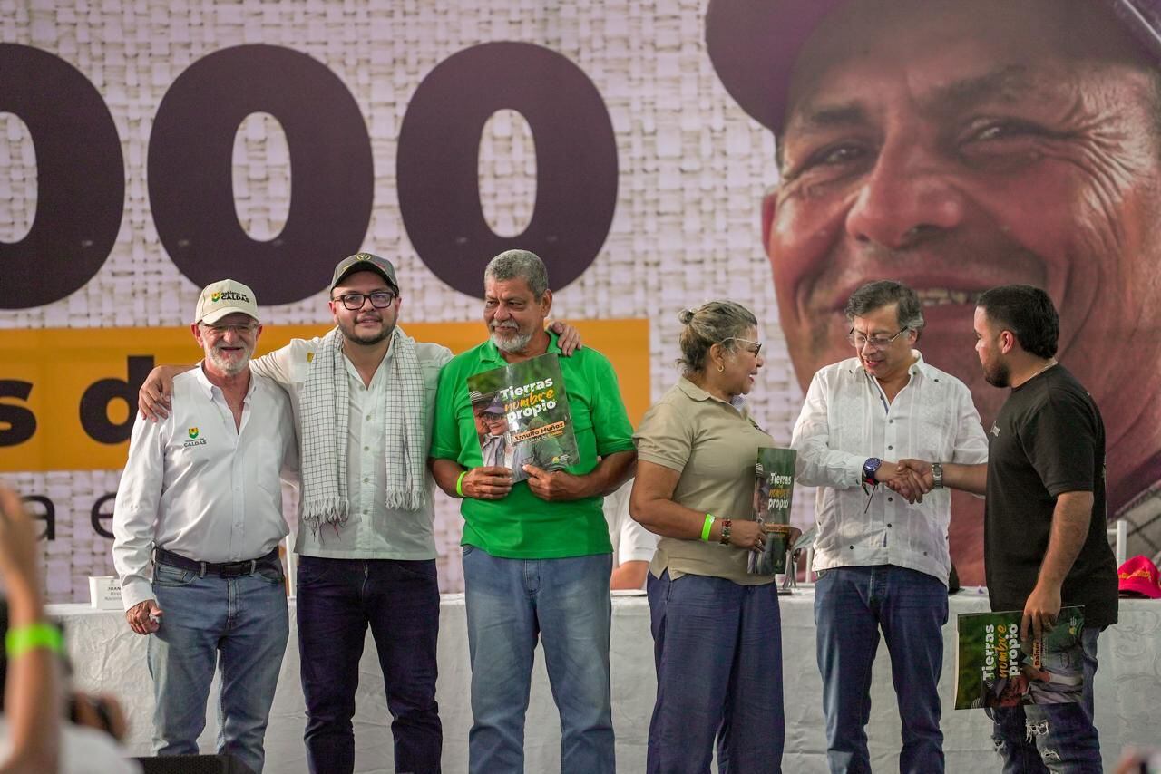 En el municipio de La Dorada, Caldas, el presidente Petro encabezó la materialización de las 18.000 hectáreas entregadas hasta el momento a familias campesinas y víctimas en los departamentos de Caldas, Santander, Boyacá, Antioquia, Tolima y Cundinamarca.