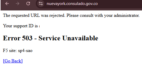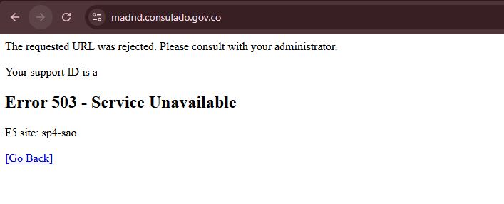 Este problema afectó a miles de colombianos en todo el mundo. Entre las páginas afectadas estaban las de los consultados de Madrid, Londres y Nueva York.