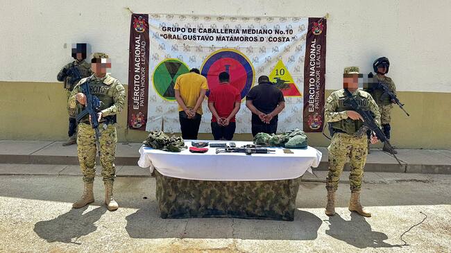 El Ejército de Colombia capturó a tres presuntos integrantes del Frente de Guerra Norte del grupo armado organizado ELN en Adaluz, en zona rural del municipio de Maicao, en La Guajira.