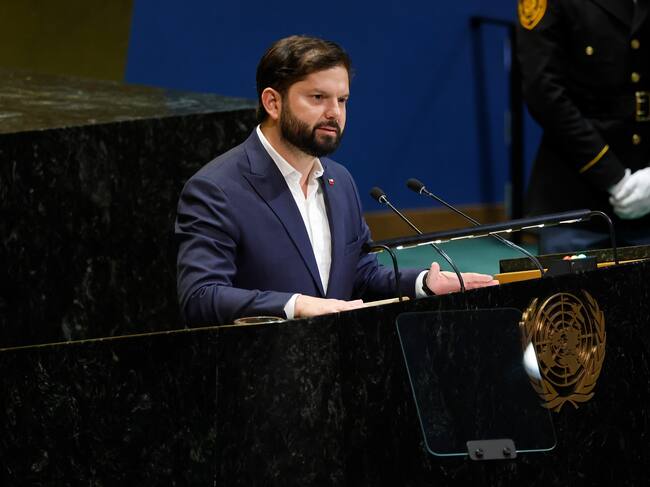 El presidente de Chile, Gabriel Boric, habla durante la 80.ª sesión de la Asamblea General de las Naciones Unidas en Nueva York. (Foto de Taylor Hill/Getty Images) / Taylor Hill