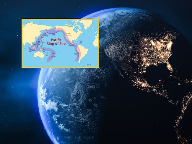 Ilustración del Cinturón de Fuego del Pacífico y planeta Tierra. Fotos: Getty Images
