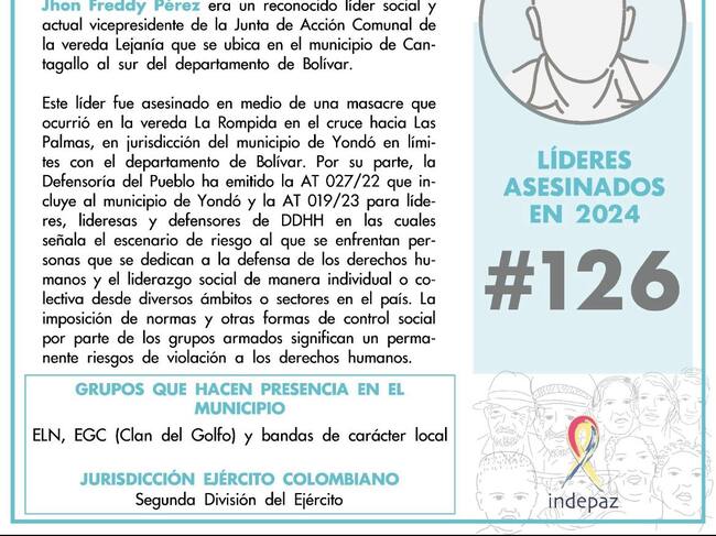La organización registró 126 líderes asesinados en la última semana de septiembre de 2024.