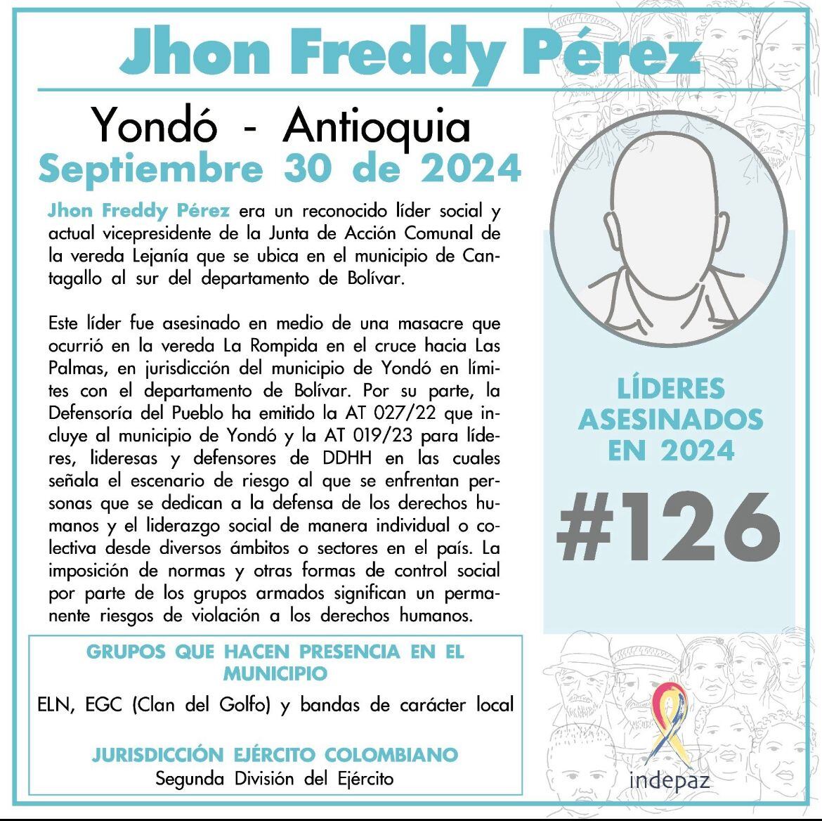 La organización registró 126 líderes asesinados en la última semana de septiembre de 2024.