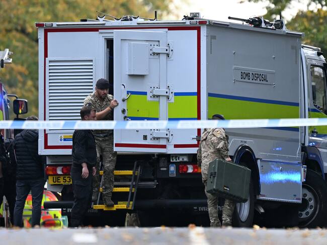 Equipo de desactivación de explosivos frente a la sinagoga en Mánchester. Foto: Oli SCARFF / AFP / OLI SCARFF