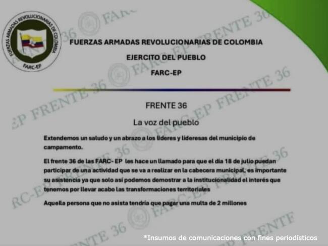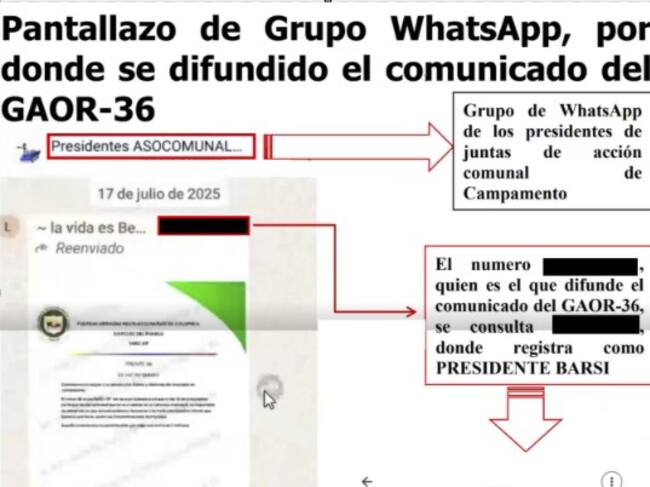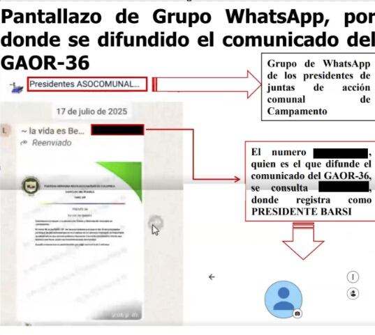 Lo anterior tendría como propósito dar instrucciones a los pobladores e instrumentalizarlos para que obstruyeran a la fuerza pública e impidieran su ingreso a determinados sectores.